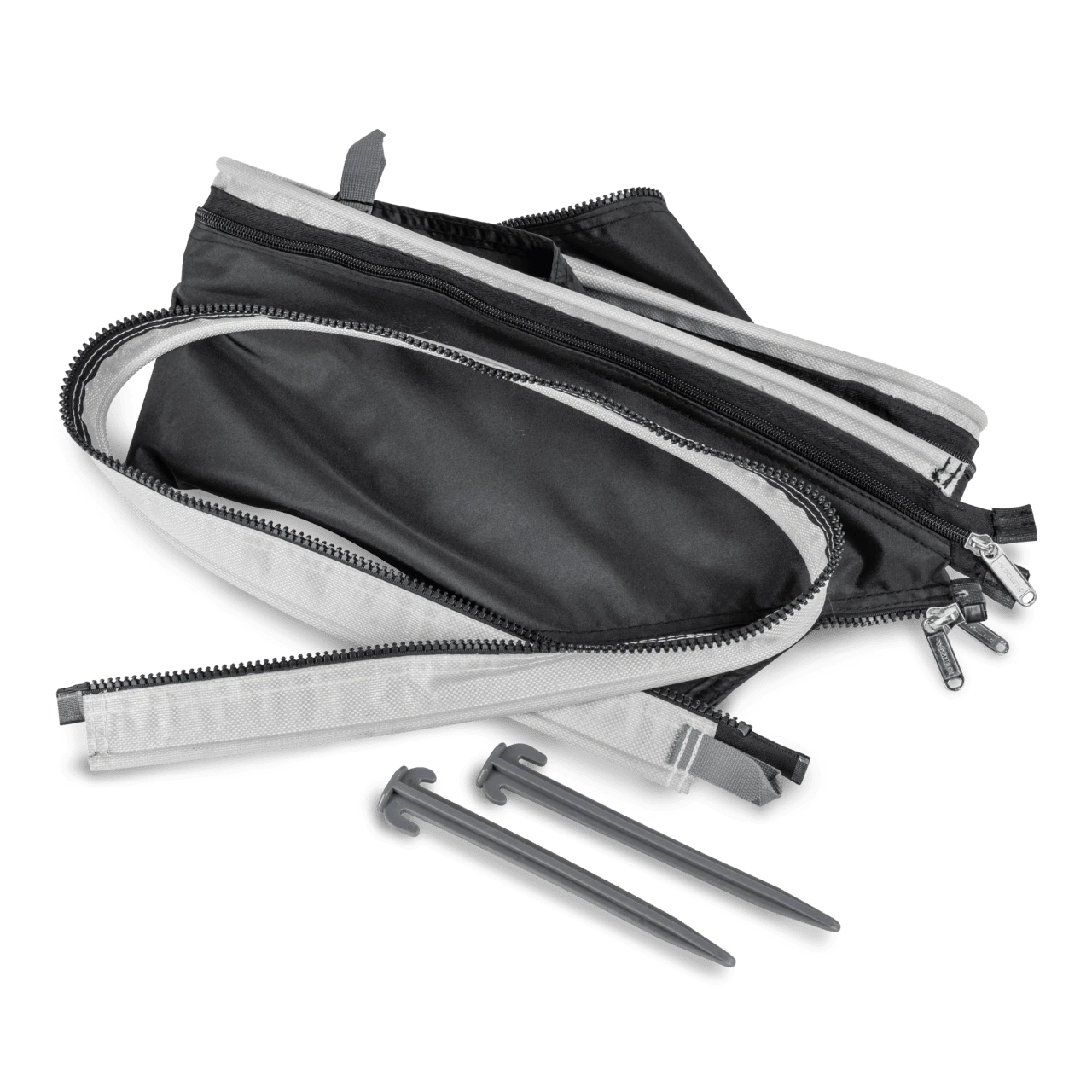Create an enclosed space aside your caravan with this simple Dometic AIR Break accessory. Simply zip one side of the Connector to the AIR Break and slide the other into the awning rail.