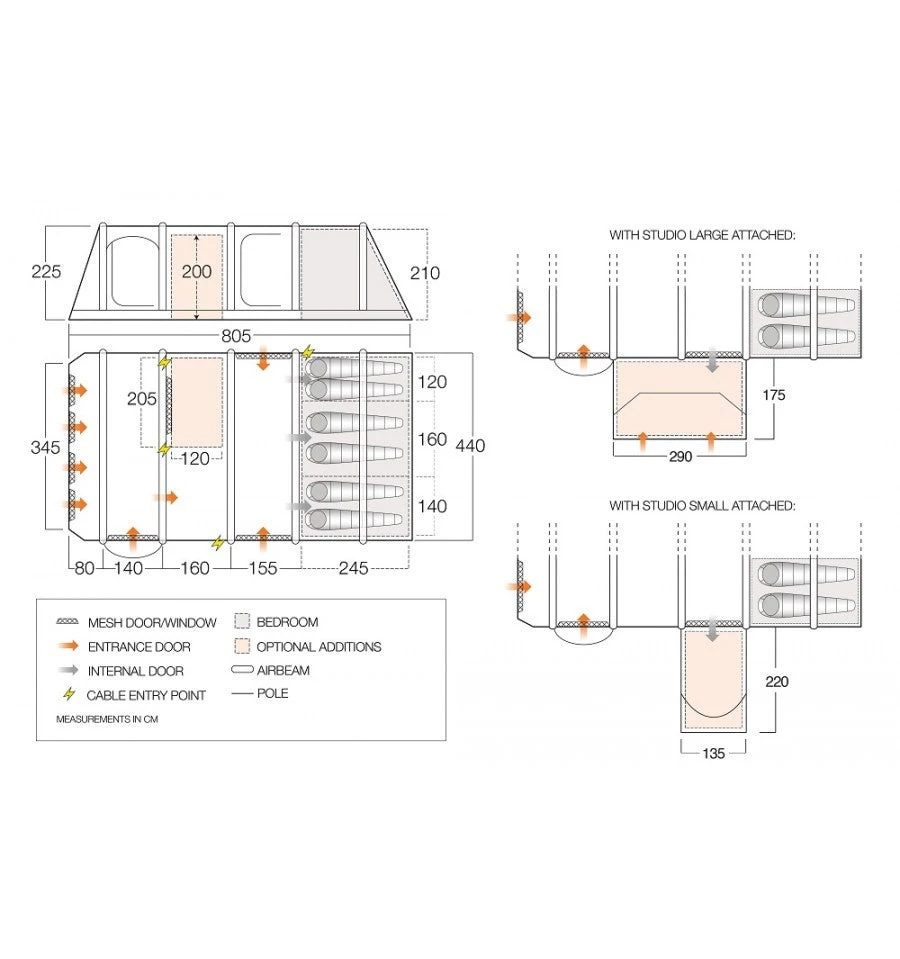 - High Cable Entry – Allows you to neatly run electrical cables out into the awning area at the front of the tent