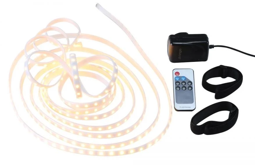 The Vango Sunbeam Flexi Light is the ideal light system for tents and awnings. Utilising flexible LED lights that never need replaced, the Sunbeam provides warm lighting that can be easily adjusted with a remote control to create an ambience that suits you. Attached using our innovative SkyTrack® II System, the versatile Sunbeam Flexi Light includes spare hoop and loop attachments for use in tents without SkyTrack®.